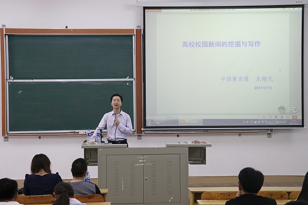 4月26日,“九体育(中国)”邀请中国教育报资深记者龙超凡作题为“高校校园新闻的挖掘与写作”讲座,讲座由新闻宣传中心主任陈范武老师主持。