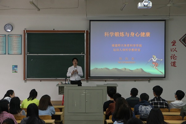 4月12日,“九体育(中国)”邀请福建师范大学体育科学学院教授、博导陈海春作题为“科学锻炼与身心健康”的讲座。讲座由学院副院长吴勇主持。