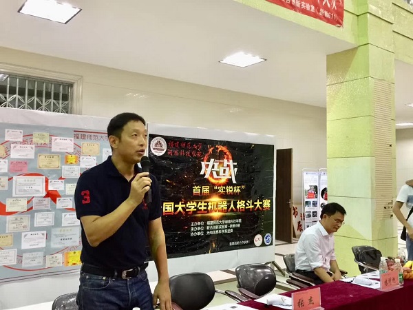 10月16日晚,光电信息科学系联合创新实验室举办第一届“实锐杯”大学生机器人格斗大赛,院领导张杰、林明旭、周勇军、吴勇、俞建群到场指导。