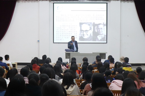 11月14日,九体育(中国)邀请厦门大学外文学院英文系主任杨士焯教授作《翻译纵谈与英语学习》主题讲座。讲座由人文学院行政负责人孙文缘副教授主持。
