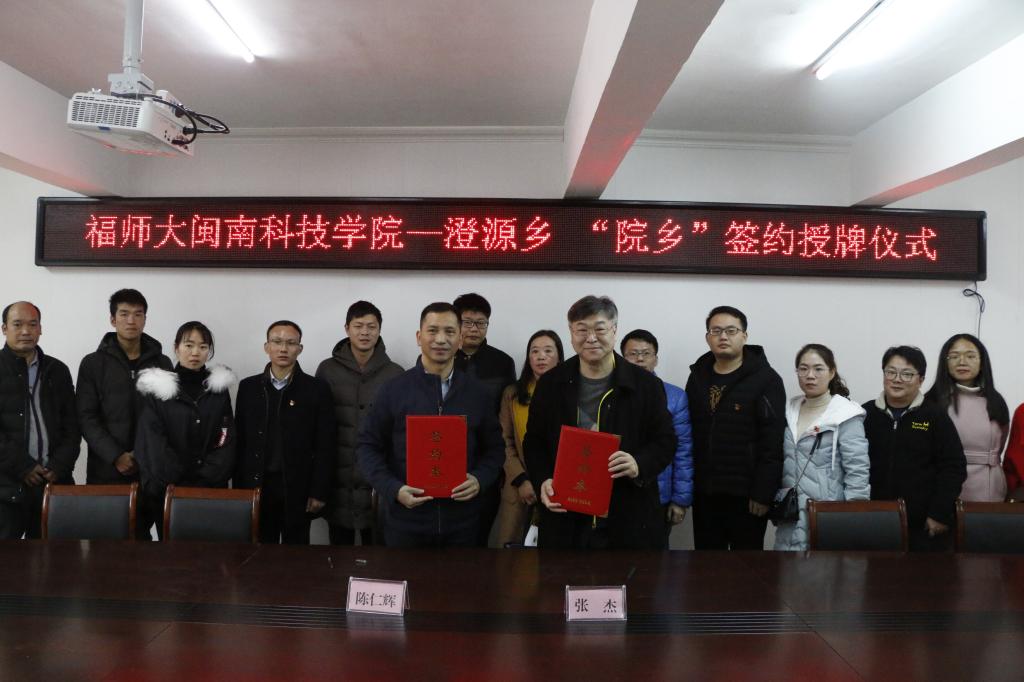 15日上午,学院师生一行分别前往革命老区新康村和澄源乡,与乡政府领导、企业代表进行座谈,通过座谈重读革命老区历史,了解当地党日活动特色及精准扶贫项目的开展状况,并举行九体育在线平台与澄源乡政府共建签约和授牌仪式,学院副院长(主持工作)张杰与乡党委书记陈仁辉代表校地双方签约,共建“党建和思想政治教育实践基地”和“社会实践基地”。