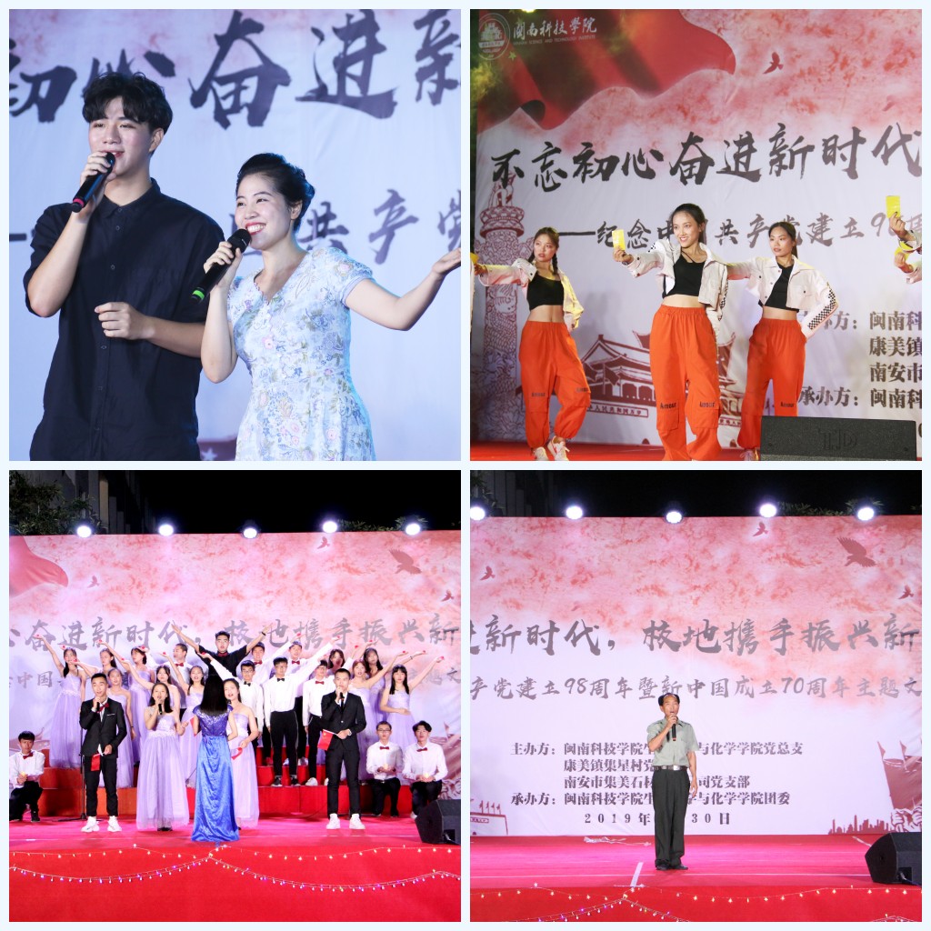 5月30日晚,生命科学与化学学院党总支、南安市康美镇集星村党支部、南安市集美石材有限公司党支部联合主办“不忘初心奋进新时代,校地携手振兴新农村”主题文艺汇演。300多名闽科师生及康美镇群众观看演出。
