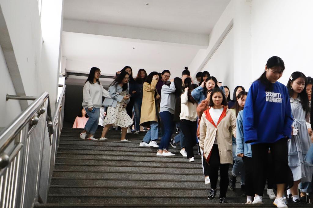 应急疏散逃生演练现场,同学们迅速有序撤离