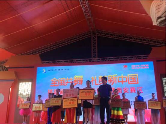 9月18日下午,福建省“全闽共舞,礼赞新中国”第三届广场舞大赛南安赛区选拔赛在南安中骏世界城举行,九体育在线平台大学生艺术团啦啦操队(指导老师:江丹丹)荣获一等奖,成功晋级泉州市比赛。