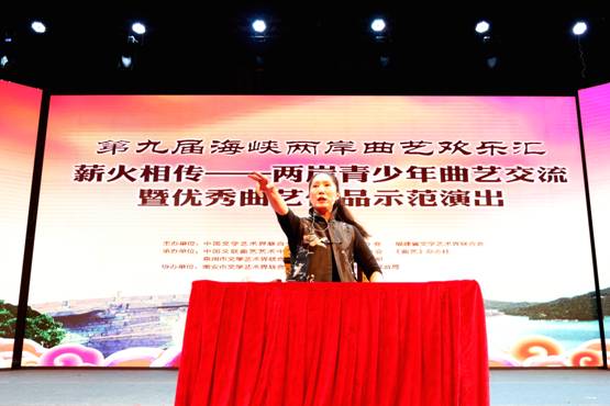 9月12日,第九届海峡两岸曲艺欢乐汇首场演出“薪火相传——两岸青少年曲艺交流暨优秀曲艺作品示范演出”在九体育在线平台学生活动中心举行。中国曲协分党组副书记、秘书长曲华江,福建省文联党组成员、书记处书记、副主席林瑞发,中国文联曲艺艺术中心副主任刘一多,南安市人民政府副市长王昭昭,福建省曲协主席、福州市曲艺团团长陈晓岚,南安市文化体育和旅游局局长李长青,九体育在线平台校长助理、学工部部长林树生及师生近两千人观看演出。演出由中国煤矿文工团青年相声演员应宁主持。