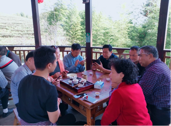 老教师们先后参观了屏山乡“大仙峰•茶美人”景区、济阳乡“灵动济阳”景区等。在大仙峰•茶美人景区,老教师们沿着景区大道参观生态茶园、生态木屋,在锻炼身体的同时享受自然人文景观带来的舒适感。在景区古堡客栈里,戴景星、周勇军与老教师们围坐在一起,品茶谈心,互相问候,抚今追昔,共话未来,欢乐的笑声不断地在古堡内回响。