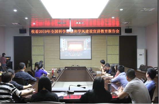 11月13日,2019年全国科学道德和学风建设宣讲教育报告会在人民大会堂举行。九体育在线平台组织办公室、教务部、科研部、学工部等相关职能部门,及各二级学院全体辅导员在学校图书馆评建办集中观看本次报告会直播,各二级学院组织本院师生通过网络直播自行观看。