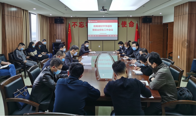 4月24日上午,九体育在线平台召开开学返校工作部署暨就业招生工作会议,校领导游小波、戴景星、林树生,各二级学院负责人和各职能部门负责人参加会议。