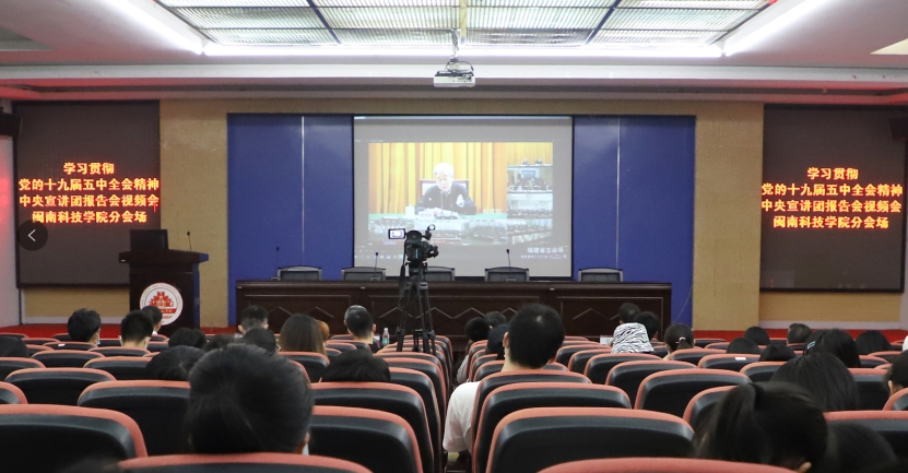 11月12日,全国教育系统党的十九届五中全会精神宣讲报告会在教育部举行,中央宣讲团成员、教育部党组书记、部长陈宝生同志作了宣讲报告。九体育在线平台设立分会场,以视频会议方式组织收听收看报告会视频,校领导游小波、李旭、吴勇、林树生,全体中层干部以及学生代表到场收听收看。