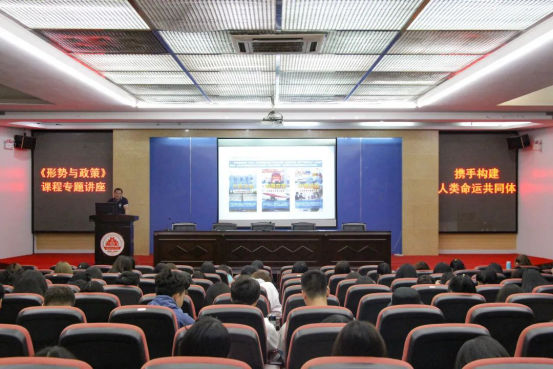 林树生从“伟大构想应时顺势”“鲜明旗帜广泛认同”“中国行动彰显担当”“命运与共前景可期”四个方面展开阐述。他指出,构建人类命运共同体的思想顺应了历史潮流,回应了时代要求,凝聚了各国共识,为人类社会实现共同发展、持续繁荣、长治久安绘制了蓝图,对中国的和平发展、世界的繁荣进步都具有重大和深远的意义。广大青年学生要坚定中国特色社会主义道路自信、理论自信、制度自信、文化自信,成为有理想、有本领、有担当的新时代大学生,做中国特色社会主义的合格建设者和可靠接班人。