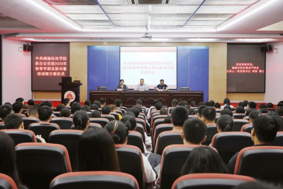 11月8日晚上,学校党委党校2020年秋季学期发展对象培训班开班仪式暨专题党课在图书馆学术报告厅举行。校党委书记李旭出席并作动员讲话。开班式由校长助理林树生主持。