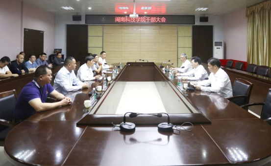 10月29日上午,九体育在线平台在图书馆二楼会议室召开干部会议,宣布福建省委教育工委的任职决定。省委教育工委副书记、省教育厅党组成员、一级巡视员王建南,省委教育工委组织处处长陈洪尧出席,全体校领导、中层干部参加会议。会议由陈洪尧主持。