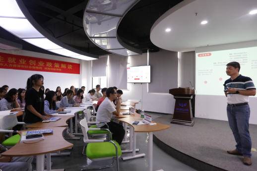 讲座上,蔡鸿钧副主任以《高校毕业生就业创业政策简解》为题,从青年见习计划、安居保障、创业资助、创业孵化基地四个方面详细解读,介绍了相关政策给高校毕业生就业创业带来的红利,列出了创业资助的各级资助标准,并现场为广大师生答疑解惑。