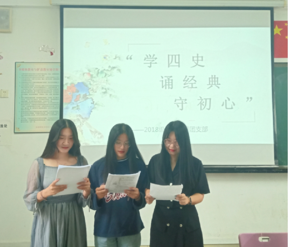 10月19日,商学院2018级城市管理专业团支部举办“学四史 诵经典 守初心”诵读活动,全班48位同学参加了活动。