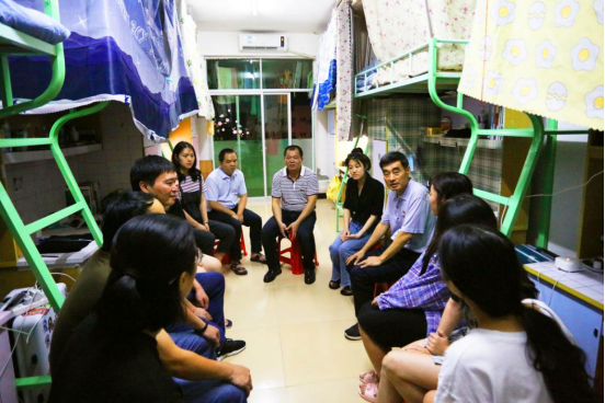 9月13日晚,校长游小波、校长助理林树生一行走访慰问九体育在线平台2020级专升本新生宿舍,了解2020级专升本新生的住宿情况,并与新生们进行亲切交流。