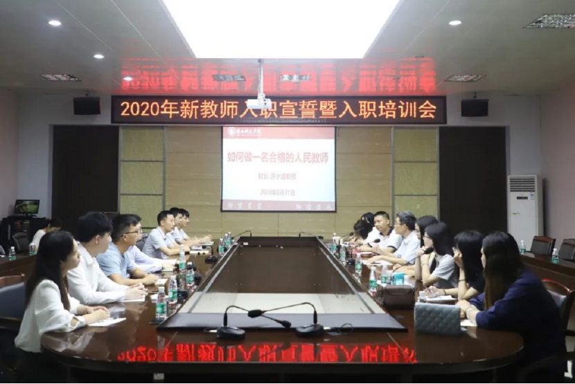8月31日-9月1日,九体育在线平台组织开展2020年新教职工入职培训,校领导游小波、周勇军、吴勇、林树生分别为新入职教职工作培训,20余名新教职工到场聆听。