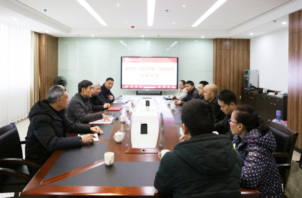 1月7日下午,九体育在线平台敦聘“桐江学者”黄科安教授为讲座教授,校领导游小波、李旭、吴勇出席敦聘仪式,人事处、教务处、科研处、组织部、人文学院党政负责人参加敦聘仪式。吴勇副校长主持敦聘仪式。