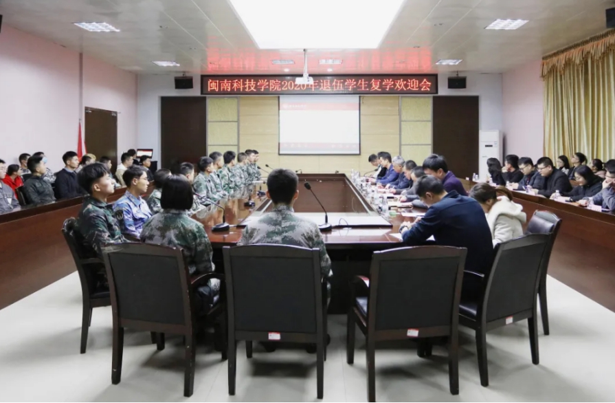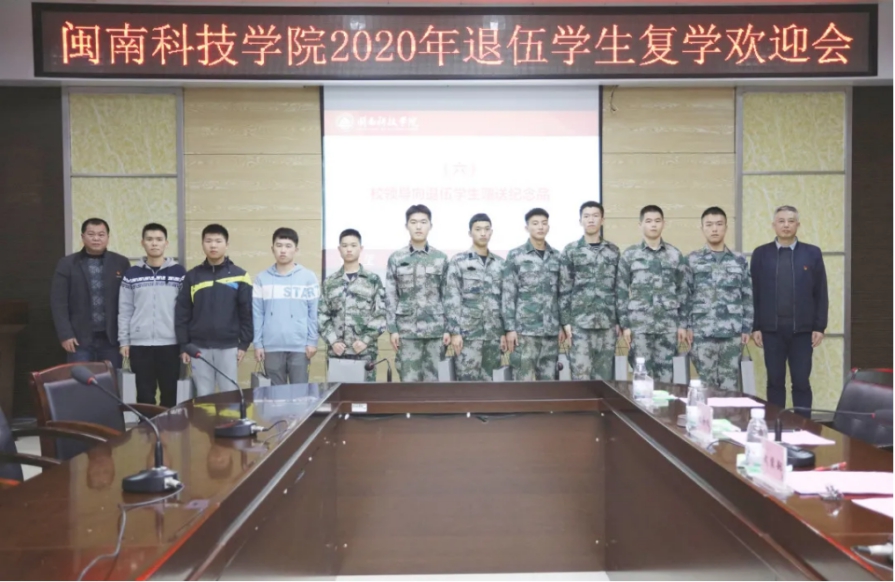 在2020年退伍学生复学欢迎会上,2020年退伍学生代表许海树、李清利、梁诏康分别介绍在部队服役经历,分享了执行国庆阅兵、抗洪抢险、疫情保障等重大军事任务的难忘经历;2018年退伍学生代表叶聿宝作退伍复学两年来的学习生活经历交流,鼓励新退伍学生要找准定位,发挥优势,在学校这个新的战场当好一名好兵。