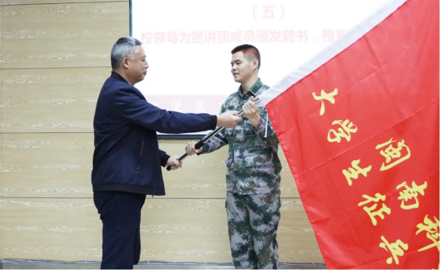 校党委书记李旭为宣讲团授旗