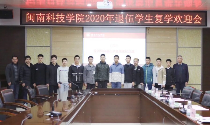 校长助理林树生向23名凯旋而归、返校复学的退伍大学生表示热烈欢迎,同时对他们在服役期间的个人成长及所获荣誉表示祝贺,并提出三点希望:一要完成一个转变。尽快适应从“学生兵”到“兵学生”角色的转变以及从军营到学校环境的转变,努力做一名全面发展的优秀闽科青年;二要保持一种习惯。继续保持军人优良作风,把在部队形成的良好道德修养、思想作风、能力素质、纪律观念带到学校,带动和促进班风、学风、校风建设;三要担起一份责任。积极参加学校征兵宣传、学生军训和国防教育活动,用自身的成长历程、精神追求、模范行动为身边的同学做好表率,努力争当退伍士兵的优秀标杆。