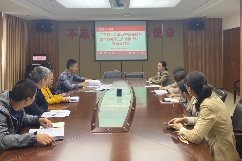 12月10日上午,教务处党支部在明德楼第二会议室召开党的十九届五中全会精神暨本科教学工作合格评估专题学习会。
