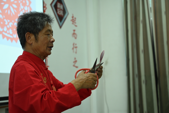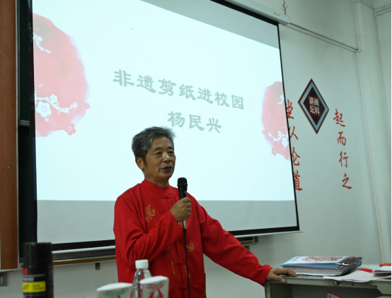 讲座中,杨民兴围绕剪纸的历史、特点、造型、内容、形式、种类、刀法、装饰、创作等进行深入浅出地讲解,并结合以庆祝中国共产党成立100周年为主题创作的部分作品为实例,详细讲述了自己创作技巧和作品背后的创作故事,让现场师生认识党史、了解党史、学习党史、尊重党史。他说,剪纸具有人文情怀和地域特点,更具有时代精神,希望同学们欣赏非遗剪纸,传承民间艺术,热爱家乡、热爱祖国,承担起传承非物质文化遗产的时代责任。