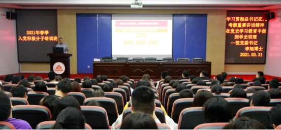 3月31日下午,校党委书记李旭到康美校区2021年春季入党积极分子培训班,以《学习贯彻总书记在闽考察重要讲话精神 在党史学习教育中做到学史明理》为题,为生命科学与化学学院、艺术设计学院、商学院、光电信息学院、计算机信息学院全体入党积极分子上主题党课,宣讲习近平总书记在党史学习教育动员大会上重要讲话精神和在闽考察时的重要讲话精神。