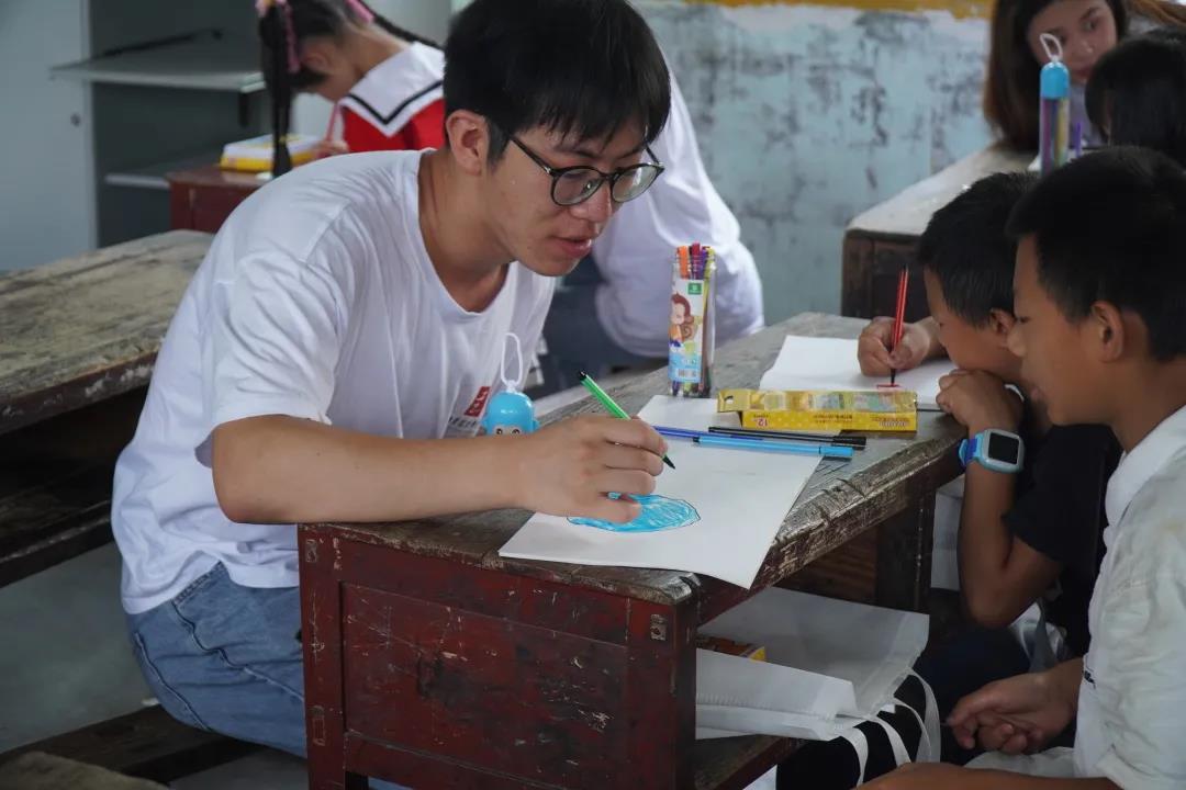 在宣讲实践活动中,实践队员们以当地四史为素材,实地深入学习并制作党史学习教育美术宣讲教案及课件,在新桥乡中心小学开展“我的祖国、我的家乡”主题党史学习教育美术课,队员们利用蜡笔绘画、水彩绘画等小学生喜闻乐见的形式,分享新桥乡实践活动中的每日研学经历与心得,指导小学生进行图画创作,引导青少年爱党、爱国、爱家乡,把红色传统、红色记忆、红色基因植入青少年的心灵。