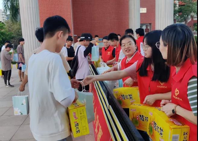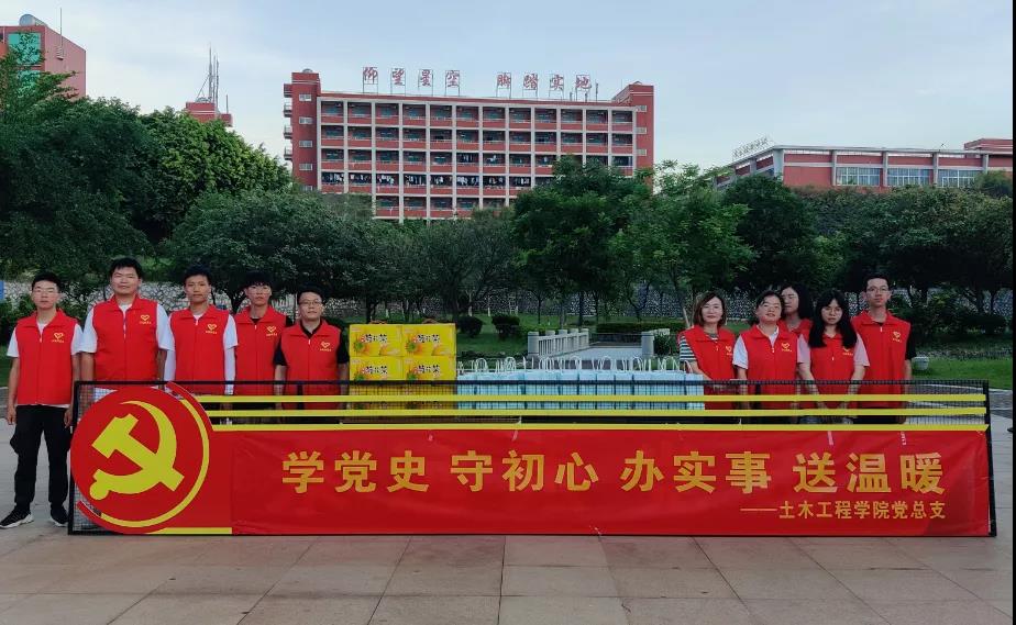 “天气炎热,请同学们注意降温防暑!”“长时间户外活动一定要记得多喝水,做好防暑防晒!”……7月13日下午,土木工程学院党总支在美林校区开展“学党史 守初心 办实事 送温暖”主题党日活动,土木工程学院部分党员师生组成党员志愿服务队,现场为参加暑期南安市房屋普查工作的2019级和2020级同学送上防暑防晒的“夏日清凉礼包”。