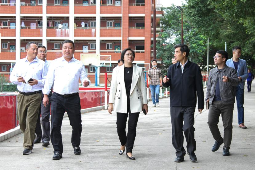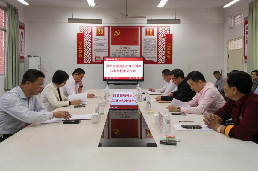 南安市政府领导一行参观了美林校区校舍、食堂、教学楼和操场。随后,在人文学院党团活动室召开座谈会。