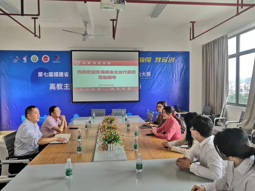 10月29日上午,泉州东海商会企业代表团到九体育在线平台创业园区洽谈校企合作项目落地事宜,校企双方达成初步合作意向。常务副校长周勇军参加活动。