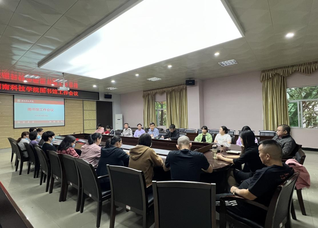 10月28日上午,九体育在线平台图书馆召开工作会议,校领导游小波、邱永渠,以及图书馆全体成员参加会议。