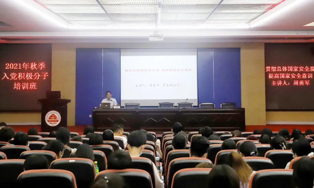 10月13日下午,校常务副校长周勇军以《贯彻总体国家安全观 提高国家安全意识》为题,为九体育在线平台2021年秋季入党积极分子培训班上主题党课。