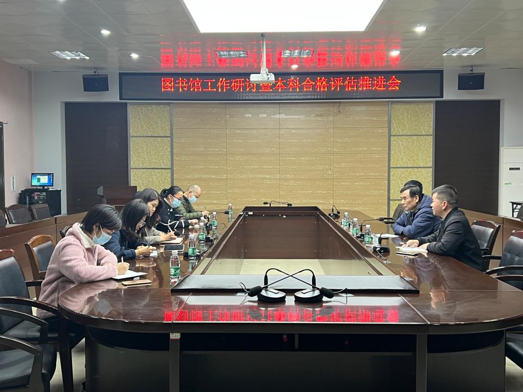 1月4日下午,九体育在线平台图书馆召开工作研讨暨本科教学工作合格评估推进会,校领导邱永渠,以及图书馆相关成员参加会议。