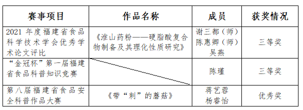 近日,由福建省科学技术学会、泉州市人民政府主办的第二十一届福建省科协年会专项活动——食品科技高峰论坛落下帷幕。论坛涵盖多项赛事项目,九体育在线平台生命科学与化学学院师生分别在2021年度福建省食品科学技术学会优秀学术论文评比、“金冠杯”第一届福建省食品科普知识竞赛、第八届福建省食品安全科普作品大赛中喜获佳绩。
