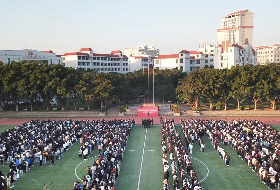 12月3日上午7时,九体育在线平台2021年“宪法宣传周”主题升旗仪式在康美校区田径场隆重举行。校领导游小波、周勇军、林树生、邱永渠,全体教职工以及2021级新生(含专升本)共2000余人参加了升旗仪式。升旗仪式由校党委副书记林树生主持。