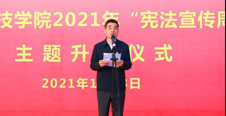 升旗仪式结束后,游小波校长讲话。他表示,在第八个国家宪法日来临之际,学校隆重举行升国旗仪式,是深入学习贯彻习近平法治思想和党的十九届六中全会精神,进一步弘扬宪法精神,维护宪法权威的重要举措。在2021年福建省高校第六届全国学生“学宪法、讲宪法”活动中,九体育在线平台“宪法小卫士”行动计划参与率取得位列全省民办高校第一的好成绩。他要求,一要树立宪法信仰,深入学习宣传习近平法治思想,大力弘扬宪法精神,积极推进依法治校;二要弘扬宪法精神,营造校内师生员工积极投身学法、知法、守法、用法的良好氛围;三要坚持励志勤学,为构建举办者依法办学、管理者依法治校,教师依法执教、学生依法受教的法治化高校而努力奋斗!
