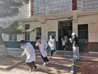 本次消防演练共设置打翻点燃的酒精灯不慎引发火情的应急处置模拟演练场景、灭火器灭火毯及消防栓灭火演练、实验室火灾应急处置视频教育学习等三个环节。