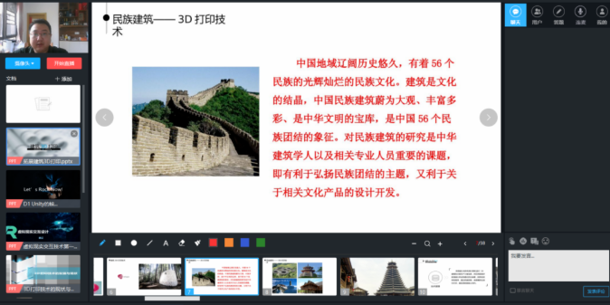 为保证线上教学良好秩序和教学质量,艺术设计学院根据学校下发的《关于进一步加强线上教学管理的通知》要求,第一时间召开系主任工作会议,周密部署做好线上教学工作。在线上授课过程中,根据不同学段、不同年级学生的特点,教师分别采取了直播、点播、录播、视频、音频等方式进行了特色教学,每位老师都充分发挥专长,为同学们开设“花式”艺术课,同时结合专业及课程特点,融合抗疫故事、学生心理健康、铸牢中华民族共同体意识,持续推进教学和课程思政改革,激发学生学习热情,切实做到了线上线下同质等效,专业教育与思政教育同向同行。