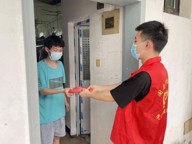 辅导员前往学生宿舍派发防疫物资