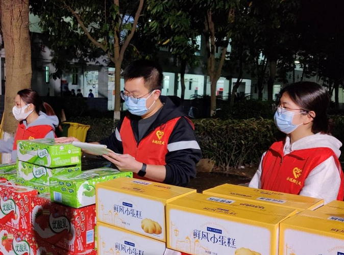 由校董事会、校友、爱心企业捐赠的生活物资和防疫物资分批送达学校,不管何时何地,他都能放下手头工作,化身志愿者冲锋陷阵。“凌晨五点,刚摸排完数据,一转眼就看到他去组织学生参加核酸检测。好不容易所有事情都暂告一段落,他又跑去搬运物资、清点分发。”同事余婷梅说。