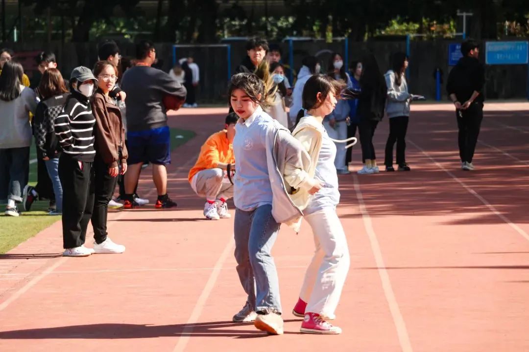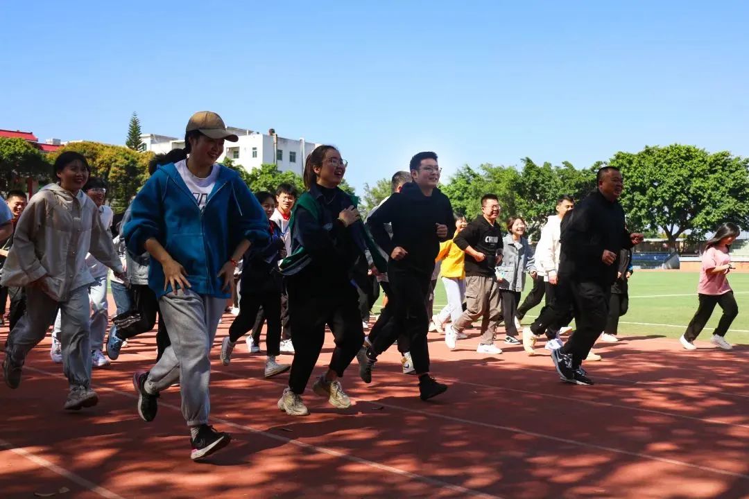 在《一起向未来》的舞蹈开场后,随着发令枪的一声指令,全体师生围绕操场慢跑,拉开了“三走”活动的序幕。