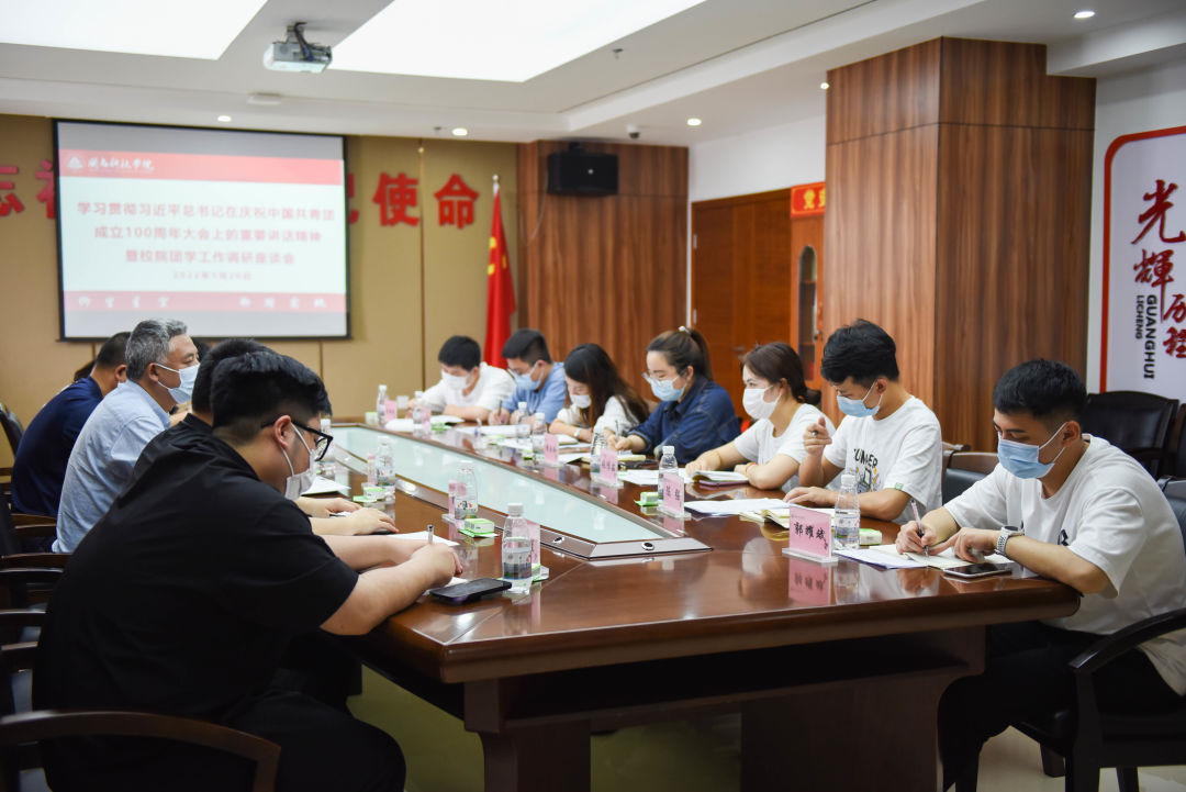 5月20日,九体育在线平台召开学习贯彻习近平总书记在庆祝中国共青团成立100周年大会上的重要讲话精神暨校院团学工作调研座谈会。校党委书记李旭、校党委副书记林树生、校团委、各二级学院团委书记参加会议。会议由校党委副书记林树生主持。