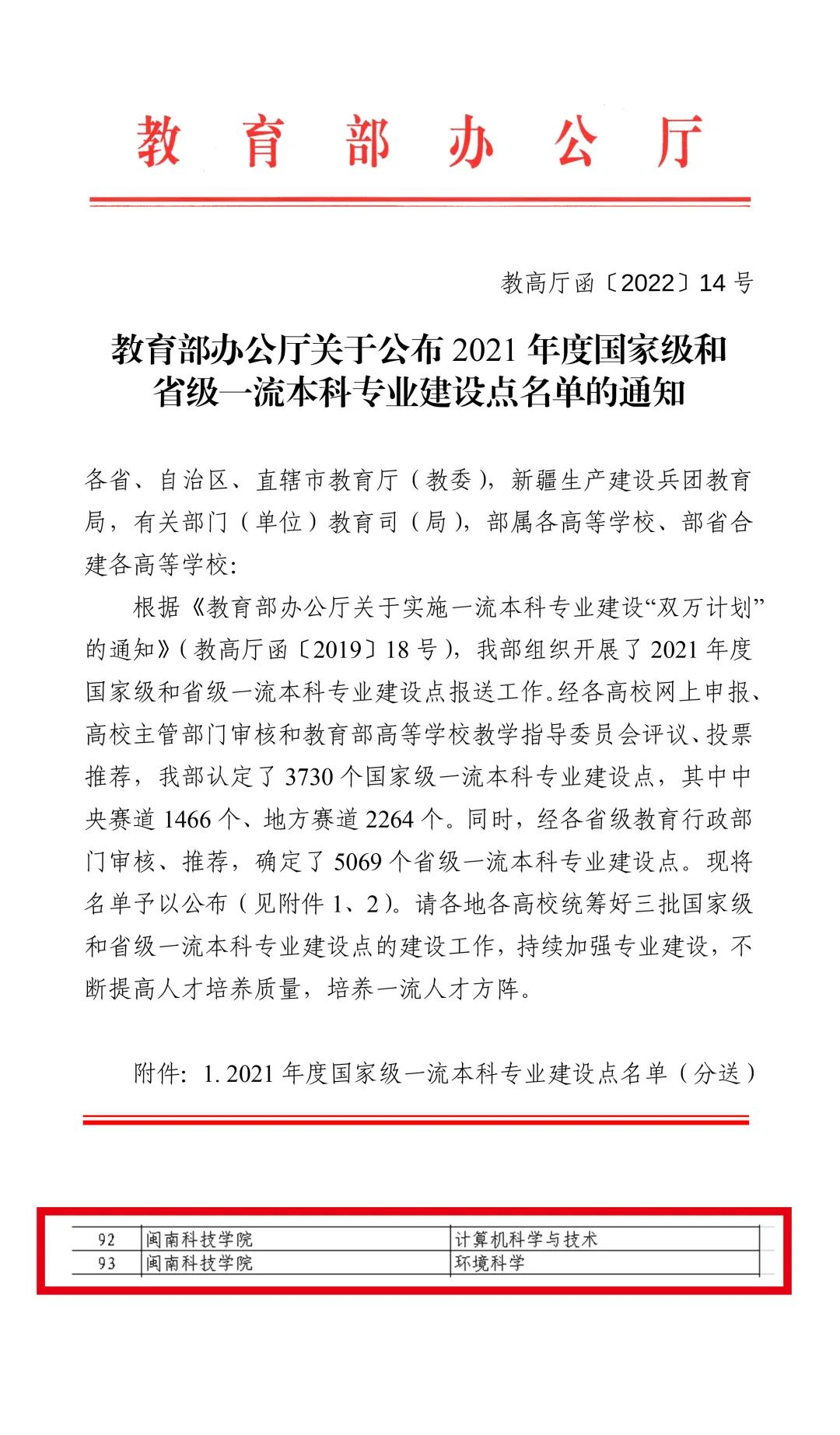 近日,教育部办公厅《关于公布2021年度国家级和省级一流本科专业建设点名单的通知》(教高厅函〔2022〕14号)下发,九体育在线平台计算机科学与技术、环境科学等2个专业获批为2021年度省级一流本科专业建设点。截至目前,九体育在线平台共有6个省级一流本科专业建设点。