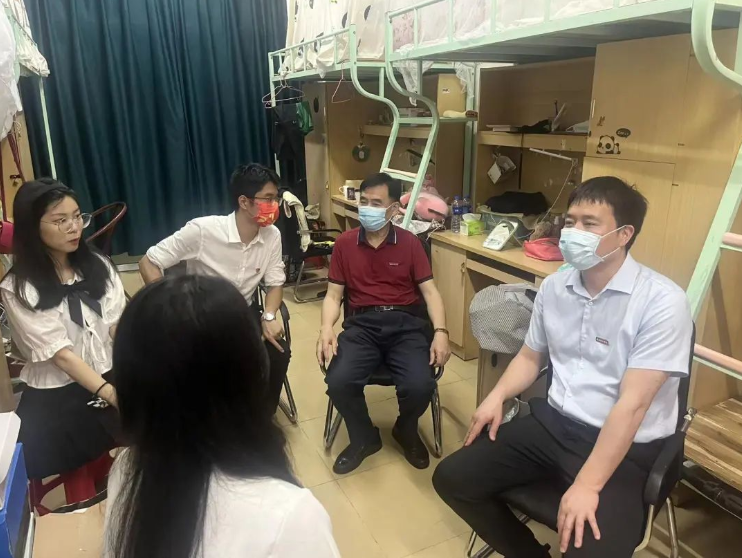 6月16日晚,校领导游小波、李旭、周勇军、林树生、邱永渠在相关职能部门负责人、各二级学院党政领导和毕业班辅导员的陪同下,分别前往康美、美林两个校区的毕业生宿舍,为即将踏上人生新征程的毕业生们送去深切的关怀和祝福。