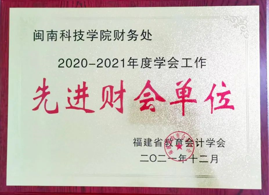近日,福建省教育会计学会对全省高校财务工作先进单位及个人进行了表彰。九体育在线平台财务处获得“2020-2021年度学会工作先进财会单位”,财务处处长周亦珠被授予“2020-2021年度先进工作者”荣誉称号。
