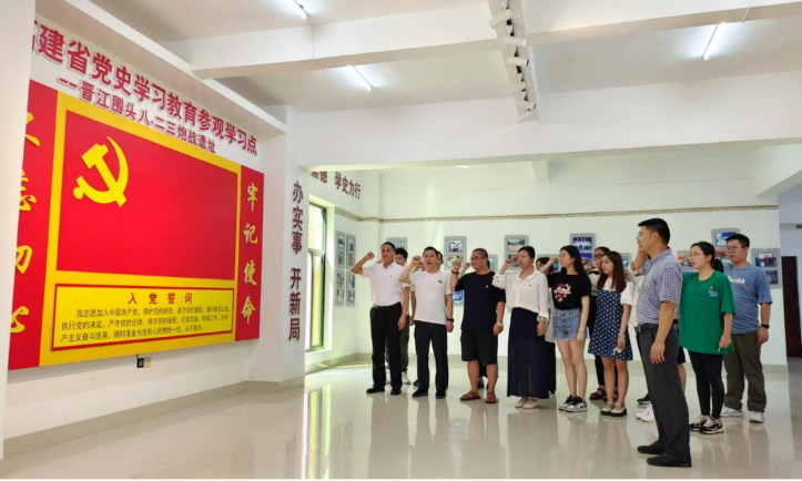 “我志愿加入中国共产党,拥护党的纲领,遵守党的章程……”在“八·二三”战地公园,全体党员在党总支书记汪艺明的带领下,面朝党旗、高举右拳,重温入党誓词。字字有力、句句铿锵,饱含着全体共产党员忠心赤诚的爱国情怀和坚定如一的理想信念。党员们纷纷表示,在新的历史起点上,要以先烈们为榜样,勇挑重担、攻坚克难,继承发扬爱国主义优良传统,更好地发挥党员先锋模范作用。