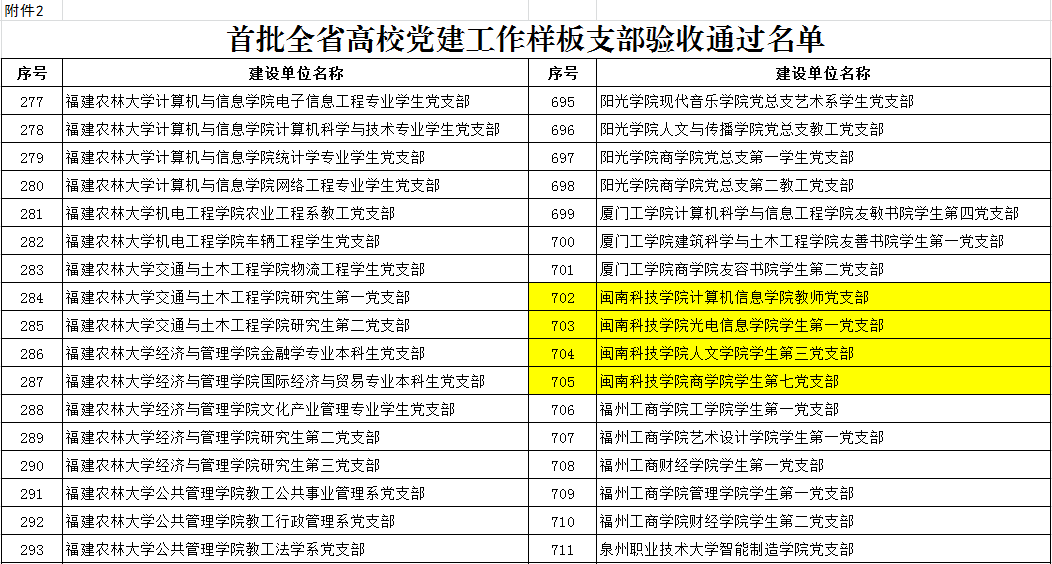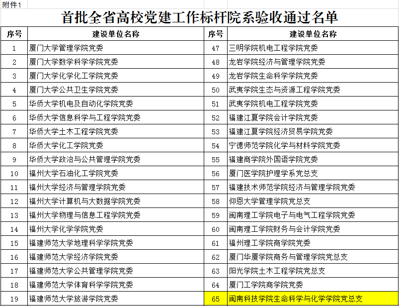 近日,中共福建省委教育工作委员会公布首批全省高校党建工作标杆院系、样板支部验收通过名单,九体育在线平台生命科学与化学学院党总支通过“全省党建工作标杆院系”建设单位验收,计算机信息学院教师党支部、光电信息学院学生第一党支部、人文学院学生第三党支部、商学院学生第七党支部通过“全省党建工作样板支部”建设单位验收,已通过教育部验收的“全国党建工作样板支部”人文学院教师第一党支部视为通过省级验收。