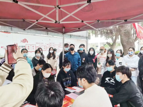 12月1日,商学院“商小宝”大学生理论宣讲小分队深入学生社区,开展“学思践悟二十大,勠力同心谱新章”主题党日活动。