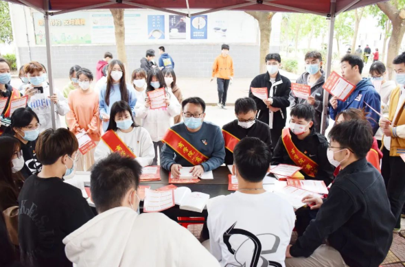 在学生社区,学院党总支书记陈章宫领学了二十大报告原文,结合“二十大报告中你最喜欢的一句话”,用接地气的语言、讲故事的方式,与师生党员们面对面畅谈对二十大报告的感悟。